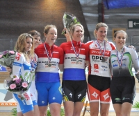 3 korte onderdelen werden gereden, eerst één punten koers over 30 ronden. Jolien D'Hoore won, Amy werd 2de. De vliegende 1000 meter met de ploeg, we reden 2 tiende te langzaam om de ploeg van de Belgen te verslaan. De 3000 meter achtervolging met de ploeg werd een minder succes, na 18(!) ronden haalden de 3 Belgische dames ons bijna in.