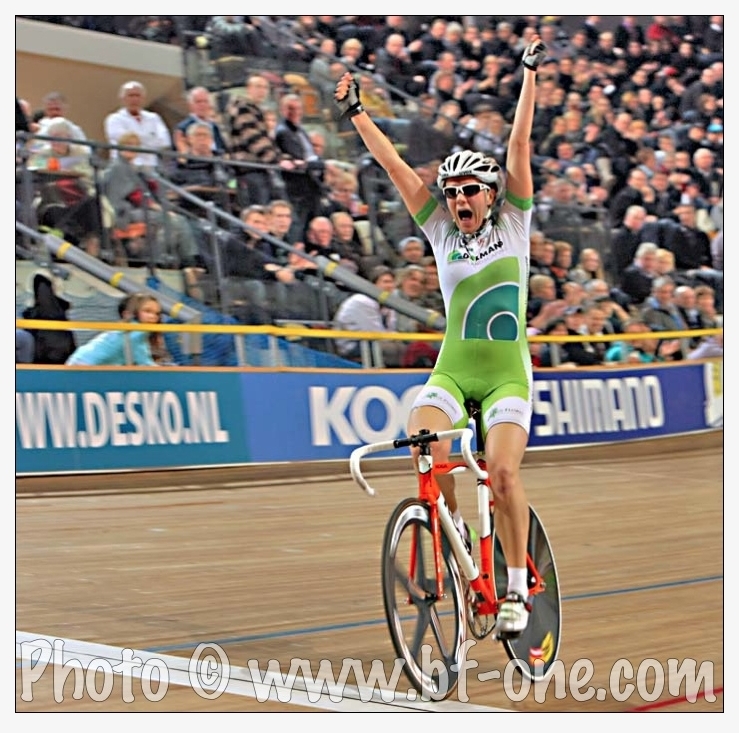 Gister als eerste onderdeel van het NK baan de puntenkoers om half 9 s'avonds mochten we van start voor 100 ronden en tien sprints. Al na 3 ronde probeert Esra Tromp het peloton te verlaten, dit lukt haar aardig en al snel spring ik achter haar aan. Met enig gemak rijd ik nog naar haar toe en probeer door te rijden, even rijden we samen. Helaas moet zei afhaken op het moment dat we het peloton al in de rug kijken. De bel klinkt voor de sprint en ik ga volledig voor gaas, ik pak de 5 punten, probeer het nog een aantal ronden maar het is kansloos het peloton haalt mij terug. Daarna blijft het een harde koers, demarrage na demarrage en verschillende groepjes die rondes pakken. Zelf probeer ik nog met Chantal Blaak mee een ronde te pakken, bij deze actie blies ik me zelf uiteindelijk helemaal op en word daarna op een ronde gereden door het peloton. Uiteindelijk weet Kirsten Wild de meeste punten te pakken en word daarmee NK kampioen, op de 2de plaats eindigt Amy Pieters en 3de wordt Ellen van Dijk.