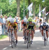 In de 2 laatste ronden was ik met 15 andere dames gaan lopen. Echter zaten van Jan van Arckel niet genoeg dames me om de koers echt naar onze hand te zetten. Met een aantal goede sprinters probeerde ik me die ronden vooral te sparen. Anders was ik sowieso geklopt. In het peloton overlegde mijn ploeggenoten ook, ze maakte de overweging; het gat dichten of het gat niet dichten? Optie 1 werd gekozen en in sneltreinvaart kwam de gele trein terug bij de kopgroep op nog maar 1,5 kilomter van de streep. Moniek Teninglo maakte met duidelijk dat ik in haar wiel moest komen. Braaf als ik soms ben gehoorzaamde ik. Alsof ze een volledige sprinttrein was in haar eentje reedt ze met mij en nog 6 andere naar de streep. De rest van het peloton uit haar wiel gereden. In de laatste 200 meter was het op mij aangewezen, lang dacht ik het te gaan halen. In de laatste meters sprinten Natalie van Gogh echter over mij heen. Een mooie prestatie om na dit weekend 2de te worden maar als je zo wordt ondersteund door je ploeggenoten is het balen dat je het niet kunt afmaken.