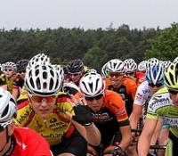 Meteen reden we in een lekker tempo de eerste berg over met Judith op kop. Op de tweede berg waar de bergpunten lagen werd flink door gefietst maar maakte niemand echt het verschil. In de derde omloop reden er 4 dames weg, zelf zat ik opgesloten. Geërgerd zei ik dit tegen Moniek die me er meteen langs liet, vrij makkelijk sloot ik aan bij de 4 met nog 1 andere dame. Met 6 weg, om te controleren was mijn gedachten. Want als we mee zitten hoeven we het straks niet dicht te rijden, simpel leek me. Maar na een ronde en met een dikke minuut voorsprong begon ik andere gedachten te krijgen. In eerste plaats "wat doe ik hier"(dit vroeg ik ook nog aan Jan, de dienst doende verzorger), in tweede plaats "dit kan wel eens leuk worden". Al dachten mijn benen hier anders over. Met wat slim geklets met mijn 4 over gebleven medestanders werd de samenwerking beter en beter. 2 klimmers, 2 hard rijders en een koersdomme Tsjech, we hadden elkaar nodig en dat wisten we allen prima. 2 minuut en 45 seconden, wat hadden mijn benen graag lekker in het peloton gezeten. Maar wat wou mijn hoofd graag doen wat ik deed. Mijn focus ging uit naar het tweede. Ik won de premiesprint, je weet nooit waar het goed voor is! Voor mijn zelfvertrouwen in ieder geval. Wim kwam kletsen, ik gaf Jan in de laatste aanloop "een box". Ik lachte nu van oor tot oor, terwijl ik nog 16 km moest fietsen. Ik moet zeggen, ik was best zelf verzekerd.