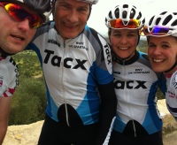 Ikzelf had er ook behoorlijk moeite mee, tot 3 maal toe kwam ik terug in het peloton. Daar streden de overige meiden vel mee om de prijzen. Roos pakte puntjes voor de bergprijs en Moniek verzamelde behoorlijk wat boni seconden en prijzen in natura. De groep van 38 meiden bleef echter bij elkaar tot vlak voor de beruchte berg. De Nederlandse Vera Koedoder koos het hazenpad met een ploeggenote. Zij pakte de winst en de 2de plek. Daarachter reed de groep die gedurende de klim uiteen spatten. Henriette was hierin de slimste en wist met 2 Amerikanen weg te springen. De laatste 500 meter reed ze beide dames vakkundig uit haar wiel en wist de derde en laatste podium plek voor zich op te eisen. Niet ver daarachter onderstreepte Moniek, Roos en Lotte de kwaliteiten van het JvA team door 27 seconden van de winnaar over de meet te komen.